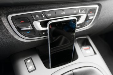 A kipróbált példány már a sokkal szebb, faceliftes verzió, amit a mandulavágású első lámpákról a legkönnyebb felismerni, ráadásul a hosszított Grand Scénic modell, aminek másfajta hátsó lámpája van, mint a rövid verziónak. Egyébként 2013-as gyártás, 2015 óta van Magyarországon, és a látottak alapján nyakamat tenném rá, hogy inkább rövidebb utakra használták. Erre utal a kavicsfelverődések hiánya az autó elején, a kilincseknél megkopott fényezés és a csúnyán szétfoszlott vezetőoldali szőnyeg.