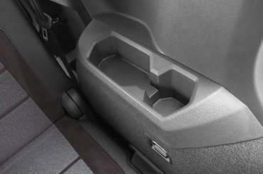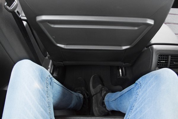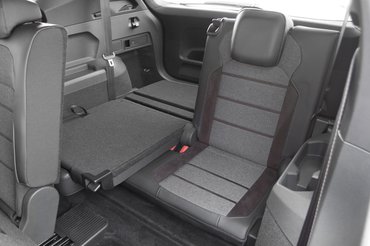 Hátul ötletek helyett két USB- és egy 12 voltos csatlakozó van, és olvasólámpák. Ja, és persze a felhajtható műanyag asztalkák, aminél általánosabb VW-csoportos nagycsaládi kiegészítő nem létezik. Amúgy ugyanaz van, mint a többieknél: széles, lapos ülőlapok és sok szétrúghatatlan sötét műanyag a széleken.