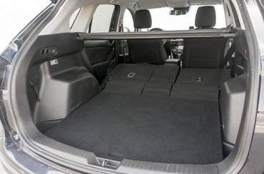 Kár ezért az élményért, mert általánosságban elég jó egyterű-pótlék a CX-5. Mega lábterekre azért ne számítsunk, de hátul jól el lehet férni benne, fejtér is bőven van, és jó nagy, 503 literes a csomagtartója. Habár harmadik üléssort nem lehetett rendelni bele, megkapjuk a mazdás Karakuri ülésmozgató rendszert, így hátulról, kallantyúval pillanatok alatt síkba dönthetjük az üléseket. És tényleg sík lesz a kapott 1620 literes tér, ami azért egyáltalán nem egyértelmű még ma sem.