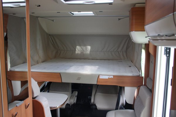 Keresztben is el lehet férni a nem kihúzott 188x140-es ágyon, ekkor azonban a rugók és a matrac szekcionált, változó puhasága nem oda esik ahová kellene. Az autó két személy részére biztosít fekhelyet, szükség esetén az étkező részből kialakítható még egy ágy keresztben, de ez inkább szükség- vagy gyerek ágy. Utazni az autóban négyen lehet, természetesen négy teljes biztonsági övvel, ketten elöl, ketten menetirányban az étkező részben.