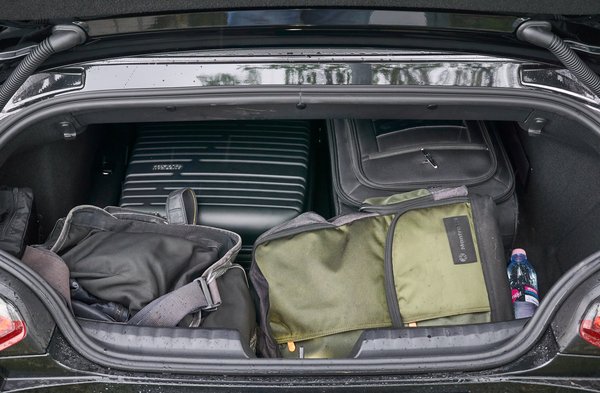 Nemcsak tágas a hely, de pakolni is van hová, amit egy MX-5 használó bizonyára irigykedve figyel. Hálós polc a hátunk mögött, könyöklő pohártartóval, kis polc a telefonnak (indukciós töltést is tud), ajtózsebek és kesztyűtartó, sőt, egy kis síalagút nyitható a csomagtér felé, ha valamiért hosszú tárgyat akarnánk berakni. Egy roadstertől fejedelmi a csomagtér is, két repülőre felvihető gurulós táska és két fotós cucc mellett még maradt hely, ezzel két ember is elindulhat utazni. A kupé-kabrió teteje anno ezt akadályozta, nyitott tetővel csak 180 liter maradt, itt viszont 281 literbe pakolhatunk, ami ebben a kategóriában bőséges.