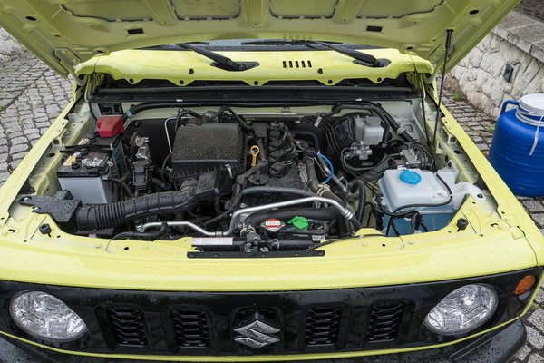 Pedig ha rosszmájú akarnék lenni, azt mondanám, az egész egy átverés. A Jimny ugyanis hiába kapott egy szép dobozt, az alváz és a futómű is az 1998 és 2018 között gyártott előd alól jön, mindössze két extra merevítőt kapott a létra. Maradt a váltó és a felező is, az 1,3-as motort cserélték csupán 1,5-ösre. Mi a négysebességes automatával kezdtünk, az Aisin-féle négygangos bolygóműves váltót az Afrika Korps is használta Tobruk ostrománál. A 100 lóerőből érzésre vagy 20 eltűnt benne, ami még 1100 kilóval nem is lenne baj, csak hát a légellenállási együttható meg vetekszik egy tálalószekrényével. Autópályán nem is kell félni a csekktől, az automata Jimny 142-ig képes gyorsítani.