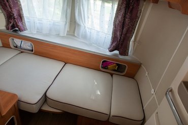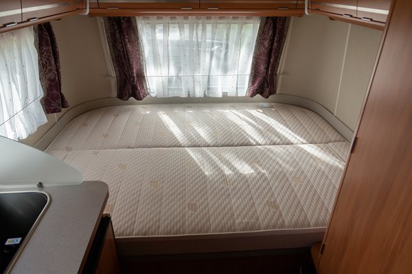 Az ágy egész nagy a jármű méreteihez képest, és az egész felhajtható, ami alatt hatalmas egybenyitott tároló rejtőzik. Kívülről sajnos nincs ajtaja, pedig praktikus lenne, van is olyan modell a Touringok között.