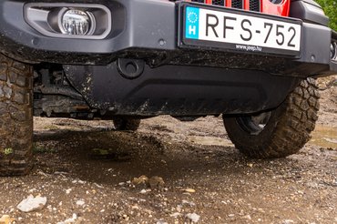 A legszembetűnőbb a lökhárító. Már az előzőn se volt kicsi, de az új Wranglerén állófogadásokat lehet tartani. Pedig szép kis kocka autó, mi ugye azért jó, mert terepen látjuk, hol a vége, de így a lökhárító miatt érdemes lenne kis széljelző antennákat rakni rá. Egyébként ezt Winch Bumpernek hívják, és azért ekkora, hogy elférjen a csörlő (köszi, tocsa120ls ;)).