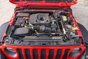 A 200 lóerős, Giulia-származású motor nem rossz, egész halk , bár teljesen nyitva már kicsit kellemetlen a dízelkerregés, egy V8 jobban illene hozzá. Európában benzinmotorból a 280 lóerős kétliteres benzinest (szintén Giulia-származék) választhatjuk, Amerikában van még hozzá 3,6 literes V6. Az automata váltó szép komótosan váltogat, az egyetlen apróság a hidegindításkor tapasztalható nehézkes kapcsolás, de ez 100 méter után elmúlik. Ez a 200 ló szépen vitte a Wranglert, a fogyasztás se volt G-osztálynyi. Országúton 8 liter körül evett, de talán még lejjebb is lehet vinni.