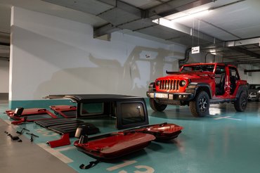 A tolatókamerát menet közben is bármikor be lehet kapcsolni, és először nem értettem, miért jó ez. Aztán amikor lecsupaszítottuk a kocsit, és hirtelen tükrök nélkül találtam magam, így mindjárt értelmet nyert. A kocsit az elődökhöz hasonlóan annyira le lehet bontani, amennyi még szükséges ahhoz, hogy minimálisan közlekedni lehessen. A bontást (tető, ajtók) hozzáértőn húsz perc - fél óra alatt meg lehet oldani, nekünk gyakorlatlanul jó óráig tartott. A hátsó tetődarabhoz nem árt négy ember, de legalább három, mert nemcsak nehéz, de nagy is.