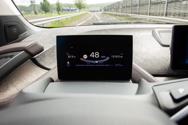 87,5 százalékos töltöttséggel gurulok rá az M1-esre. Onnan jön a nullás, aztán a Balaton végéig az M7-es kilométerek. Sietnem nem kell, de nem akarok a kamionok közt totyogni se, beállok 130-ra. Az adócsaló sporthibrideket leszámítva én vagyok az egyetlen zöld rendszámos a pályán. Fura ez a magány, Budapesten – főleg Budán – öt percenként szembe jön egy másik i3, két percenként egy Leaf, itt meg még egy Tesla se. Tavaly év végéig 134 ezret adott el a BMW az i3-ból, de úgy látszik, azok nem az autópályán gyűjtik a kilométereket. Pedig jó vele tempósan menni. Óra szerint 150-nél leszabályoz, kétsávos pályán van élethelyzet, amikor ez fájni tud, de még százhúsznál is ott van az a jóféle villanyos rugalmasság, amivel könnyen lehet kerülgetni a kamionsort.