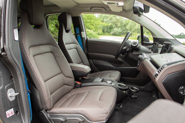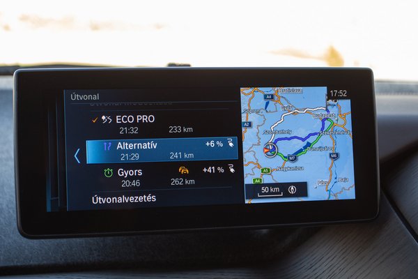 A villanyautózás árban eleve prémium dolog, talán ezért sincs kevesebb i3-ból az országban, mint a félmillióval olcsóbb e-Golfból, de még a másféllel olcsóbb új Leaf sem népautó ehhez képest. A teljesítménye a konkurensekhez képest már mutat valamit a hagyományos erőviszonyokból: 170 lóerejével a kategóriában ez az i3 huszonhárommal veri a Leafet és harmincnéggyel a villany-Golfot. Ráadásul hátul hajt, de fura, mert azt a hátbaverős azonnali csúcsnyomatékos villanyautós érzést nem hozza, a Leaf sem rémlik rugalmatlanabbnak. A nulla-száz 7,3 másodperc neki, az sem egy űridő a kategóriában, de ezekkel a keskeny kerekekkel talán nem is baj, hogy nem hangolták brutálabbra a vezérlést. Cserébe autópályán jó vele tempózni, némaság van.