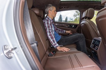 Alaphelyzetben 625 liter a csomagtér űrmérete és bár ez lényegesen kisebb, mint a Cayenne 770 litere, úgy képzelem, a porschés családok nem visznek zsugor ásványvizeket meg egy tálca sóletkonzervet a nyaralásra, ráadásul a csomagtartó ebben a verzióban is több mint 1,5 köbméterre bővíthető, ha a hátsó, alapvetően két utas számára ideális üléssort ledöntjük. Inkább ez utóbbival lehet gondja némelyeknek, mert hátul középen ülni kamaszkor után már nem igazán jó.