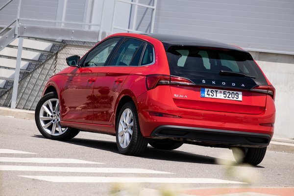 Érzésre is olyan – egy kompakt autós komfortú és nagyjából -tágasságú jármű, amelynél a rejtett repedések mögül kivillan a kiskocsi. A helyre tényleg nem lehet benne panasz, mert elöl-hátul kifejezetten tágas. Annyira, hogy amikor a forróságtól félbambán a Superb Scout vezetőüléséből átültem a Scaláéba, igazából csak azt vettem észre, hogy egyszerűbb a környezet és vállban keskenyebb a doboz, holott másfél kategória köztük a távolság és a Superb maga is egy helyrekorder.