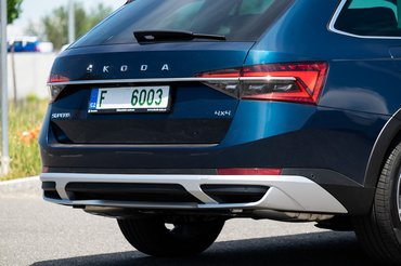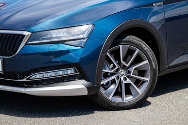 Nagy csodára nem kell számítani, hiszen ez alapvetően egy összkerekes Superb (ugye, kiejtve „szuperb”, nem pedig „szuper bé”, hiszen az angol „kiváló” szóból származik, „szuper á” pedig amúgy sem volt), aminek 15 milliméterrel megemelték a futóművét. Külsőleg mit látni rajta? A kerékkivágások körüli műanyagokat, valamint hogy az alsó részükön aluhatású betétek laknak a lökhárítókban, a küszöbökön és az ajtók alján meg műanyag kopóbetétek. Szintén alumíniumosak a tetősínek és a tükrök. Ez összességében elég ahhoz, hogy a Scout egyedinek és drágának hasson a többi Superbhez képest.