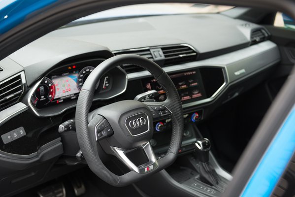 Az előző Q3 lélektelen, az-anyukája-se-szerette dizájnja után meg merem kockáztatni, kimagaslót alkottak. Főleg az ajtókon. A kilincs,a kapaszkodó meghosszabbítása, ahogy az egész a műszerfalon folytatódik. Tökéletesek az ülések, az ergonómia, magam mögött úgy elférek, hogy szinte szívesebben utazok hátul: nincs csalás alacsony és rövid ülőlappal, egyszerűen csak elfér az ember. A Q3 csendes, nyilván, még dupla oldalablakok nélkül is.