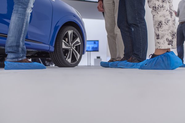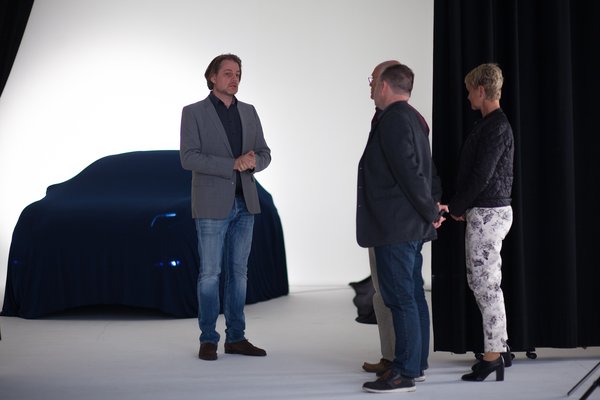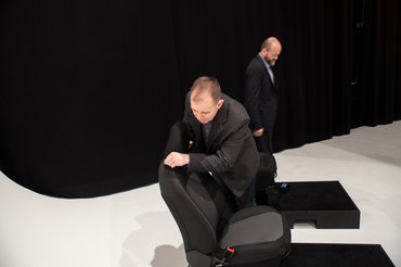 A titkos bemutató Düsseldorf egyik hatalmas fotóstúdiójában volt, ahol egy tévénél nagyobb tárgyat is le tudnak fotózni. A minden sarkában lekerekített, hófehér szobában csak néhány lámpa adott támpontot, meg a függöny, amivel leválasztották a stúdió másik felét. Mi olyan nejlont húztunk a cipőnkre, amilyeneket intenzív osztályon szokás látogatáskor, itt viszont más a cél: a cipőnk ne fogja össze a fehér padlót.