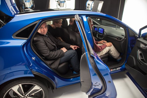 Ahogy Morel mondta, a jó forma alapja, hogy jó helyen legyenek a kerekek, és most persze röhögcsélhetnénk, hogy a tetőn elég vacakul néznének ki, de ő arra gondolt, hogy eléggé a sarkokban legyenek. És ott is vannak, meg kellőképpen hangsúlyosak is. Aki viszont arra számít, hogy összkerekes verzió is lesz a terepes kinézetű gépből, csalódni fog: a Fiesta alapjain összkereket nem lehet csinálni, meg minek is. Aki egyébként ezt tényleg igényli, annak ott az Ecosport AWD. (Hatalmas lehet rá az igény, a magyar árlistán nincs is rajta.) A bemutató a külső forma után túlnyomórészt olyan extrákról szólt, amitől egy női autós elájul, de a Puma külsőre azért nem túl nőies, Morel formatervező is azt mondta, hogy nem akartak túl cuki autót csinálni, inkább magabiztos és optimista külsőre törekedtek.