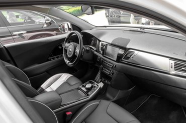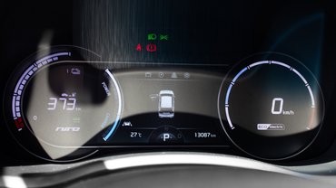 Manapság már nem szokás hisztérikusan egyedi külsőt tervezni a villanyautókhoz, a gyártóknak nem ciki a kínálatban, de a légellenállás- és zajcsökkentés miatt úgy sem lehet megúszni valamennyi orrplasztikát. A Nirón telibe falazták a hűtőrácsot, amit a fehér tesztautónál például meg sem próbáltak hűtőrácsosra hazudni mondjuk egy sötét dizájnnal. Ahogy a Soulnál, itt is odatették a töltőcsatlakozót. A felni teljesen új. A 0,286-os légellenállási együtthatóba az is beleadta a magáét, de a betapasztott orr és a teljesen síkra burkolt padlólemez adják a javát. Szélzaj nem is nagyon van, menetzaj azért akad. Legvalószínűbb, hogy a 17-es kerekek hangja jön be, hiába vastagítottak még a padlószőnyegen is.