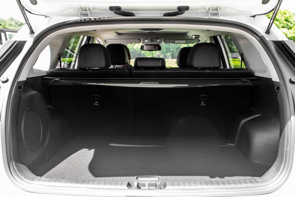 Belül nem varriáltak sokat azon túl, hogy lett egy nagy műanyagtömb középen elöl, ami lényegében az új menetirány választó, de oda szórták az ülésfűtés és a rögzítőfék gombjait is. Méretben nem tűnt fel, hogy egy giga akkupakkon ülünk. Már hibridként sem volt végtelen tér hátul, most sincs, de többet ne várjunk: ez egy crossover. A 451 literes csomagtéren sem akad fenn valószínű senki, aki a kis városi terepjárózásban aktív, pedig az itt tényleg nagy szó. Villanyautónál ritka, ha sok pakolható liter marad, de itt annyi van, hogy még az ebben elég jó Leafet is veri tizenhattal.