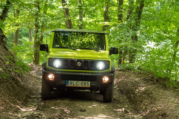 Ha pedig ez mégsem lenne elég, akkor is miénk lesz a sok képmutató városi terepjáró között az igazi offroad gép. A Börzsönyben letérve a járt útról hamar egészen aljassá vált a terep és ha nem hallottam volna ezer helyről, hogy a Jimny bárhol elmegy, biztos, hogy lapítva visszatolatok. Ehelyett olyan utakon verettünk önfeledt vihogás közepette, hogy gyalog sem indultam volna neki. Elképesztően szórakoztató a 100 lovas szívómotor unott zümmögése, miközben felezőben himbálózik az 1100 kilós kaszni az eszetlen bakhátokon, és eszében sincs elakadni.