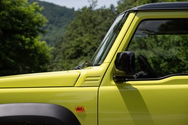 Ezzel lényegében el is jelentéktelenednek a hátrányok, és csilloghatnak az erények. A Jimny külseje zseniális. Olyan emberekből hozott ki intenzív érzéseket, akiknek egyébként egy előttük eldübörgő Ferrari sem üti meg az ingerküszöbét. A kerekek felett egy emelettel lebegő kaszni az irgalmatlan sárvédőszélesítésekkel, és a fakocka formával telibe találja a gyermeki énünket, aki nagyjából ilyen autót rajzolt először az oviban.