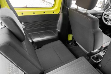 A másik nagy előnye városban, hogy kicsi és kocka. Pótkerék nélkül három és fél méter, és mivel nincsenek a sziluettjében ívek, pont ott van vége, ahol sejtenénk. Persze az apróságából az is következik, hogy belül sem nagy. Elöl ugyan jól elférni, de hátra vagy bepakolunk a lehajtott ülésekre egy 370 liter környéki vaddisznót, vagy négyen utazhatunk tűrhető kényelemben, és talán még két fürj fér a maradék csomagtartóba. A Jimny tehát elavult technikán utaztat véleményes kényelemben, trehány úttartással, és még hely is alig van benne. Ezt mindenképp érdemes megállás nélkül mantráznunk, ha 5-6 millió környékén szeretnénk autót vásárolni, máskülönben könnyen egy végtelenül vidám, őszinte kis cukiságba találjuk magunkat, pedig eredetileg Vitarát akartunk.