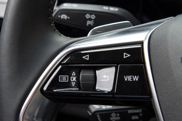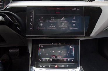 Van egy cimbim, aki 2012-es A8-ast hajt, és szívesen átülne egy frissbe, de nem tud megbarátkozni a kijelzőhegyekkel. Az e-tronnál is fel lehetne emlegetni, hogy LCD-vel parkettázták, emiatt sokkal kényelmetlenebb vele bármit csinálni, mint egy Mercedesben. Az a baj, hogy túl erősen kell nyomni a kijelzőt, és oké, hogy visszarezeg, de ettől még le kell nézni, még a legegyszerűbb klímabeállításokhoz is. Nem is értem, hogy amikor minden közlekedésbiztonsági kampány arról szól, hogy ne mobilozzunk vezetés közben, akkor az Audi miért rak be térdmagasság alá egy tabletet a középkonzolra. A menü felépítése viszont kellően átgondolt, logikus, nem kell külön képzés a használatához.