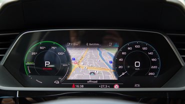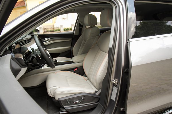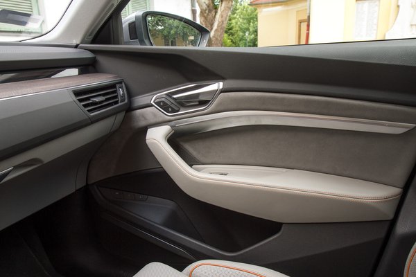 A villanyautós suhanás egy olyan élmény, ami még huszadjára is meglepő. A hang és rezgések hiánya, a folyamatosan, rántások és hullámok nélkül leadott erő annyira ellentétes a korábbi autós tapasztalatokkal, hogy még szerintem egy-két évig garantáltan rá fogok csodálkozni. Az Audi nóvuma az, hogy egy A6 kényelmét, extráit és anyaghasználatát kapjuk villanyosítva, ami nem rossz. Öt éve az Audi volt a beltér mércéje: ők tudták legjobban az összeszerelési minőséget és az ergonómiát is, az A8 óta viszont nem ilyen egyértelmű a fölény: az elég jól kitalált MMI-t váratlanul digitális panelra cserélték, ami messze nem használható olyan jól vezetés közben.