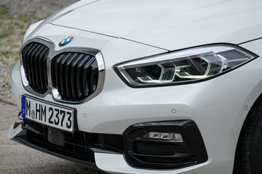 A vesék, hát persze, a vesék. Azok is nagyobbak lettek, s az 1-esen most először össze is érnek a középső vonalnál, az orrlyukak (amelyek valójában vesék, de ne menjünk bele) pedig a tetejüknél megtörnek, így a rács kicsit folytatódik a motorháztetőn. Finom mintájúak a szögletesített Angel Eye nappali fények, hátul L alakú a helyzetjelző, a Hofmeister Knicket - a BMW-k jellegzetes hokiütő-törését a hátsó ajtók ablakának hátsó végénél – dupla törésesre vették és vastagabban kanyarították.