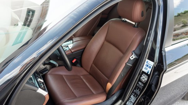 Utóbbi sokat dob a belül meglehetősen fantáziátlan, és sok helyen elég olcsó hatású beltéren. Bár a kipróbált autó példásan viselte az elmúlt öt évet, jártam egy hithű, BMW-fanatikus kárpitosnál, aki szerint ezek a bőrök nem bírják túl sokáig beavatkozás nélkül. Ebben az autóban ugyan még nyoma sincs a pusztulásnak, csupán a műanyag ajtórekeszeken látszanak karcok, még a sötét zongoralakk is csodás állapotban van. A hely, és a kényelem egy ekkora autóban már nem lehet kérdés, ez az ötösnél is így van, csupán a hátsó középső ülés az, amit jobb, ha inkább kartámasznak használunk.
