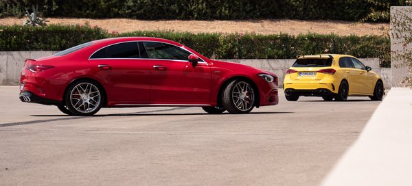 Ilyen ügyes trükkökkel talán egy fokkal nagyobb eséllyel vesz AMG-t például egy tehetséges fiatal futballista vagy influencer, de az érdemi kérdések tekintetében is eléggé kompetens csomagnak tűnik mind a két kaszni - még a gyengébbik változatban is. Az S-mentes, sima A45 4MATIC+ 1560 kiló, ugyanez a CLA esetében 1610. Az alapváltozatban csak rongyos 376 lóerőt kapunk, de ha inkább rámennénk a 45S-re akkor elől már hatdugattyúsak a fékek és 210 lóerős a literteljesítmény. Az egyetlen hátrány, az egyelőre még nem tisztázott feláron túl a nagyjából tízen pár extra kiló. Ennyit bőven megér, hogy négyessel kezdődő számmal villoghatunk a klubban.