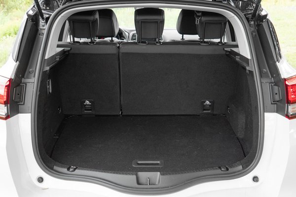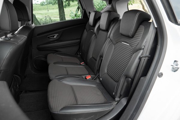Bár a zajongás a tapasztalatok szerint mindenkit stresszel parkolásnál, a Scenic hibái leginkább a vezetőre összpontosulnak. Miért zavarna az anyósülésben, vagy a tágas hátsó sorban bárkit is, hogy a váltót nem olyan jó kapcsolni? Sokkal fontosabb szempont, hogy kényelmesen el lehessen férni, jó legyen a légkondi, és a telefontöltéssel se kelljen bajlódni. Ezen a téren pedig nincs hiba. Ahhoz képest, hogy nincs 4,5 méter az autó, hátul is bőven van elég hely, ráadásul a hátsó sorban három teljes értékű ülés is elfért valahogy, ezért nem akkora szívás középre kerülni a kakasülőre. Öt ember kényelmesen megvan hosszabb távon is, és még a csomagoknak is marad 504 liter, bár ebbe az értékbe már beleszámolták a padló alatti csempész dobozt is. A hátsó sor egy gombnyomással síkba dönthető. Elég szórakoztató látvány ahogy szép sorban behúzza a fejtámaszokat és nagy csattanással előre dönti az üléseket.