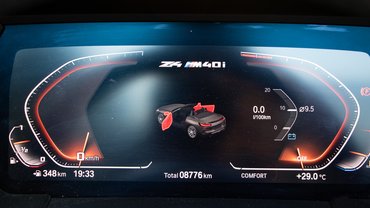 A sportautósághoz kell egyfajta civilizálatlanság, a Z4 pedig elképesztően civilizált, hiszen a vevők ezt várják. Ha onnan nézem, hogy manapság mennyi lehetőség van egy autót tényleg keményen hajtani, akkor érthető is. A kényelmes krúzolás tulajdonképpen jobb is így, mintha valami hardcore sportgép lenne, aztán ha szökő évente kell, akkor durván meglódul. Amúgy megkapjuk az aktuális 3-as BMW belsejét, annak összes infotainment kezelőjével és egyéb jótéteményével. A menü letisztult, könnyen kezelhető, aminek kell, annak van dedikált gomb az iDrive vezérlőn. A műszercsoport itt is teljesen digitális, és nem, itt sem lehet rá semmit egyénileg konfigurálni, csak a műszerek színe és grafikája változik menetmódtól függően.