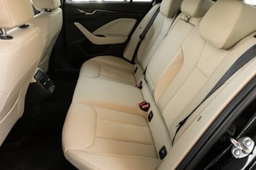 Semmi csicsa, nincs Mars-kőzet, sem szüzek bőrével polírozott gangeszi uszadékfa, egyszerűen csak közepes anyagok ízlésesen elhelyezve. Ez a kagylófényű műanyag egész friss, legalábbis nem tudnék felidézni más autót, ahol láttam volna, és viszonylag kevés a zongoralakk is. Közvetlen előttünk nincsenek otromba dolgok, a spórolást igyekeztek a látótéren kívül elrejteni, és egyre csak szorul vissza a zongoralakk. A vaj bőrbelsőt imádom, főleg, hogy az ülések közepe hasított bőr, eggyel nehezebb ráizzadni. És én szoktam a leginkább elsiratni a fekete autóbelsőket, de lehet, hogy praktikus szempontok alapján ezt tényleg feketével kérném, gyűjti a koszt rendesen, a hasított bőrről még csak le sem lehet törölni.