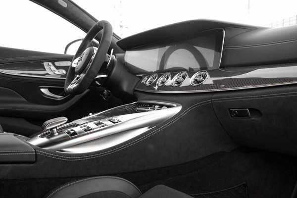 A karbon fékek, a fix szárny, a szögletes kipufogók ennél fogva nem is a tulajdonosnak kellenek, hanem a szomszédnak, a kinézett nőnek, a haveroknak a teremben. Na jó, azért valami show a beltérben is van, mert bár ez-az ismerős egy E osztályból, azért a GT szériát jól elkülöníthetővé tették. Sokáig szóltak a pletykák arról, hogy a négyajtós GT-k majd a kétajtós GT-k nyújtott, könnyűfém platformjára épülnek, aztán végül az E-merciből faragták őket.
