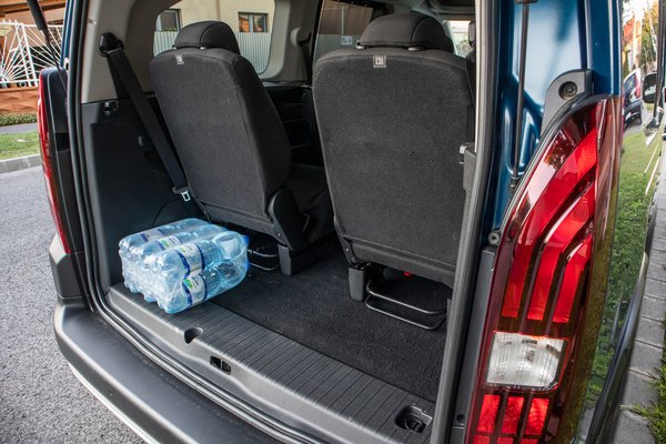 Hét üléssel a 850 literes csomagtartóból úgy saccolom, ránézésre 300 liternél nem marad több (hivatalos adat következetesen nincs, de az Opelnél és a Citroënnél sem). Kinyomoztam, a Ford Grand Tourneo Connecthez 322 litert adnak meg, a kategóriabajnok egyértelműen a Caddy Maxi 530 literrel, de a VW esetében meg az ülések kiszedése kétemberes buli. Aztán döntse el mindenki, melyik a hasznosabb.
