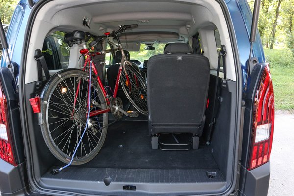 A Rifternél az egyik pótszéket kirakva máris irgalmatlan csomagtartónk lesz, vagyis a kormány által megálmodott 3-4 gyerekes családhoz ideális jármű, 5-höz már nem. A csomagtartó egyébként a hátsó székek nélkül 850 liter a rolóig és 2,7 köbméter a tetőig pakolva, csak a két első ülést meghagyva. Nagyon durva, 28-as trekking biciklit lazán lehet állítva szállítani (!!!), egy-két ülés lehajtásával.