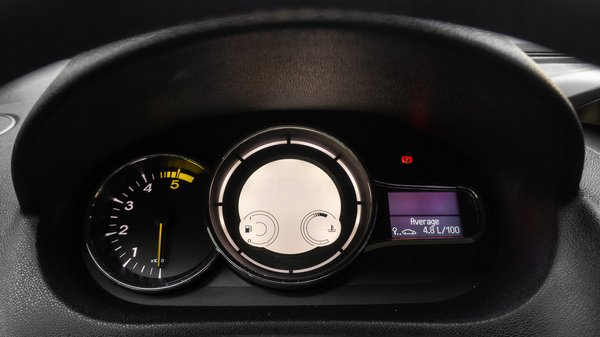 A beltéri anyagok átvészelték az elmúlt négy évet, csakúgy mint a korabeli Renault-kban. Itt is a bőrbevonatú dolgok koptak fényesre elsőként, de egyébként minden rendben. A látványtól elájulni senki nem fog, de legalább az ergonómia nagyjából rendben van. A néhol elég rossz minőségű kapcsolók és az ember hóna alá, a semmi közepére száműzött tempomat/limiter váltókapcsolója azért vicces, és azt sem teljesen értem, hogy a digitális sebességmérő háttérvilágítása miért halványul el fényes nappal, ha bekapcsolom a tompított fényszórót.
