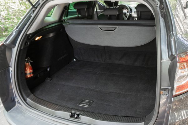 Helykínálatból is hozza azt, amit egy kompakttól elvárhatunk, nem nyomja a műszerfal a térdet, még az ülés is viszonylag tűrhető, nem volt fárasztó benne a vezetés. Az ülőlap bal oldali része azért már elkezdett kicsit vetemedni. Hátul pont elegendő a hely, az ülőlapok sem túl rövidek, viszont az emelkedő övvonal és a kicsi hátsó ablak miatt kicsit klausztrofób érzés itt ülni. A kombiságot se vették túl komolyan a franciák: az ötajtóshoz képest hat centit nőtt tengelytáv centijei érzésre inkább a csomagtartóba vándoroltak, ami 492 (más mérések szerint 527) literes. Az üléseket néhány vetélytárssal ellentétben nem lehet ledönteni hátulról, ráadásul az ülőlapokat is fel kell külön állítani ahhoz, hogy a támlákat nagyjából síkba lehessen tenni. Ekkor 1600 literes csomagterünk lesz miközben a csomagtér padlója alatt teljes értékű pótkereket találunk.