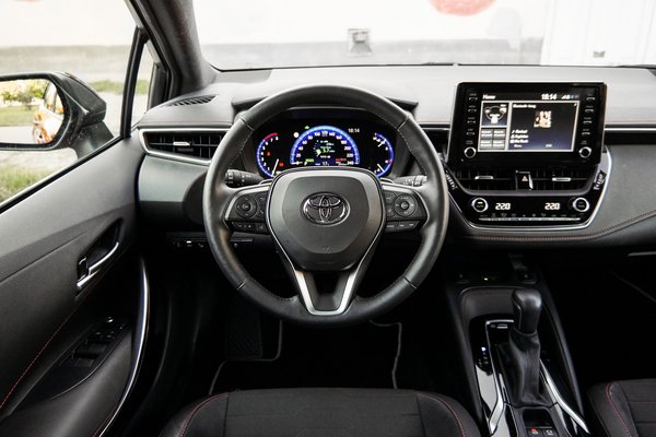 Azonban amikor már azt hinnénk, a Toyota végre megcsinálta az igazán kívánatos, vagány hibridet, akkor elszúrnak pár kötelező mutatványt. Nem csak a hátsó ülés volt ugyanis kényelmetlen, de az első sportülésben sem találtam meg rendesen a helyem, részben a csak fel-le állítható, és túlságosan előre türemkedő fejtámla miatt, részben mert valami gyösz a kárpit alatt nyomott, pont középen a derekamnál. És legalább ennyire zavaró, hogy bár a motor halk, egyéb tekintetben zajos a Corolla utastere, a kerékzaj és a szél is bejön nagy tempónál, és amikor válaszul felhangosítottam a gyári hifit, arról meg kiderült, hogy kellemetlenül, csúnyán szól. A digitális műszerfal önmagában akár jó fejlemény is lehetne, de a Corolláé nehezen leolvasható katyvasz lett, annyi információt szórtak szét egyetlen kis téglalapon. A tízmilliós tesztautóból hiányzó navigáció miatt meg csak azért nem panaszkodom, mert akkor is a telefonét használom, ha van.