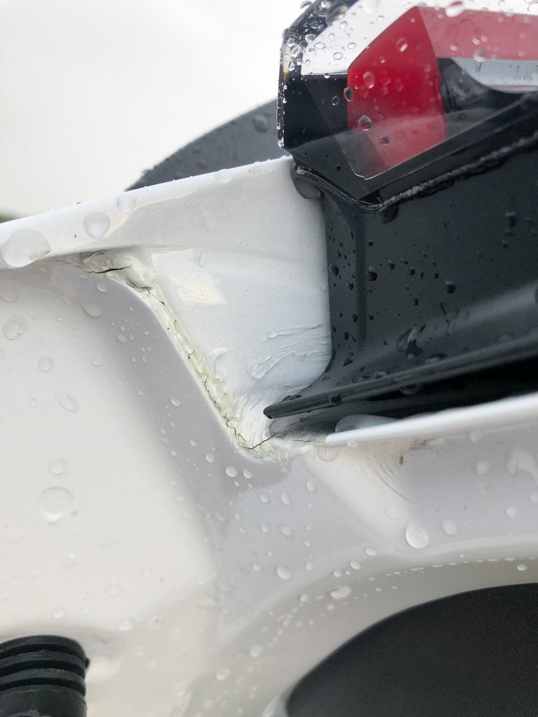 Ne szépítsük: a Model 3 nagyon jól néz ki, de ha eleget keresel, találsz rajta ronda kivitelű részletet. A nálam járt autó vonalai nagyrészt szépek, sehonnan nem kelt rossz benyomást, de találtam olyan pontot a csomagtérfedél alsó-belső élénél, ahol reped a felületkezelés. Ha az én 21 milliós autóm lenne, bántaná a szemem. Ha onnan nézem, hogy hogy néztek ki a koreai autók 20-25 éve, és hogyan most, akkor azt mondom, jóindulattal belefér. Az általános kiviteli minőség kívülről jó, a fényezés szép, az egész autót jó nézegetni.