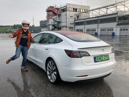 Versenypályán csak szakadó esőben vezettem, de ott is feltűnt, hogy közepes tempóig pokolian gyorsul, és abszurd módon lerakja az erejét az útra. A Tesla saját menetdinamikai rendszert használ, nem dobozost valami beszállítótól, így a motorok vezérlésével oldanak meg egy rakás, máshol bonyolult differenciálművekkel, többtárcsás kuplungokkal és ESP-vel kezelt feladatot. Én ennyiből meg nem mondom, hogy a rendszerük végeredményben jobb-e, mint a hagyományos, de az biztos, hogy elég jó, és végtelenül egyszerűbb (mármint mechanikailag).