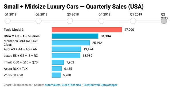 Ez az egyik magyarázat arra, hogy a Model 3 egészen elképesztő eladásokat produkál: jelenleg messze a világ legnépszerűbb villanyautója, még a sokat emlegetett kínai villanyautók közül se jár a közelében semmi. Amerikában a gyártás felpörgése óta több fogyott belőle, mint a nagy európai prémiumok bármelyikének összes nem-SUV modelljéből együttvéve. Nem az elektromosokból, hanem az összesből. Tudom, hogy ezt Magyarországról nehéz megérteni, ezért magyarázom túl: Amerikában áprilistól júniusig másfélszer annyi Tesla Model 3 fogyott, mint 2-es 3-as, 4-es és 5-ös BMW együttvéve. Több mint kettőször annyi, mint ahány Audi A3, A4, A5 és A6 mindösszesen. Merci dettó.