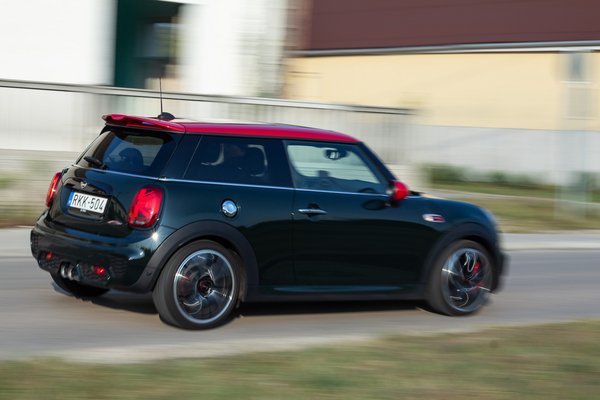 Négy éve már, hogy a Mini az akkor még új Cooperből is kijött egy John Cooper Works-szel. JCW-vel, ahogy a köznyelv hívja ezeket a teljesítményben csúcs Miniket, amikkel kapcsolatban kevesek tudnak közömbösek maradni, a nem közömbösek többsége pedig rajongva imádja ezt a vadul cuki formát. Pedig kilóg minden irányba ez a dizájn a közízlésből, olyan megfoghatatlanul vegyes. Egyszerre Elton John és Johnny Rotten; ott van benne fullosan a brites szórakozottság és egy őrült tekintetű punk. Egyébiránt ilyen ez már negyedik éve, mert volt most ugyan egy szolid modellfrissítés, de abból a külső nem kapott.