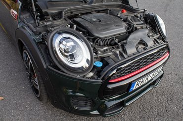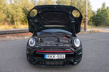 Ahogy az UKL platform, úgy a kétliteres motorja is a BMW-től jön. A négyhengeres turbós benzines a frissítés után is 231 lóerős, és ugyanúgy hamar, már 1250-nél leadja a 320 Nm nyomatékát. A hatos automata helyett viszont már az új nyolcfokozatú automata van. Az élményautóságon ez se nem dobott, se nem csonkított, alig észrevehetően dogozik a háttérben. A kormány mögötti fülekről már nem ennyire kerek a dolog. Nyolc fokozat között ugrálni ujjheggyel eleve könnyen sok lesz egy szerpentines csapatáson, de itt a füles váltás egy fél ütemmel mindig le van maradva a JCW-n, szóval akinek bármiféle váltásélmény kell, vegye a kézivel.