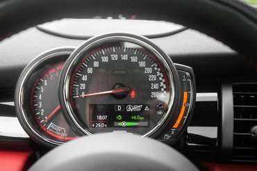 Bent szemre maradt ugyanaz, azaz a legnagyobb baja továbbra is, hogy érthetetlenül magasan van az ablakkeret. A horizontba lógó visszapillantóval együtt ezek már tudnak klausztrofóbiát okozni. A tesztautóban Union Jack van mindenhol. Ez amúgy ugyanannak a giccsesen britességnek a terméke, amiből a borzasztó Erzsébet királynős műanyag étkészletek születnek, de a Mini valahogy nemzetközileg is vállalhatóvá tette a birodalmi zászlót. Annyira hisznek benne, hogy ez általánosan menőnek számít még nálunk is, hogy a Union Jack-mintás hátsó lámpát szériában adják.