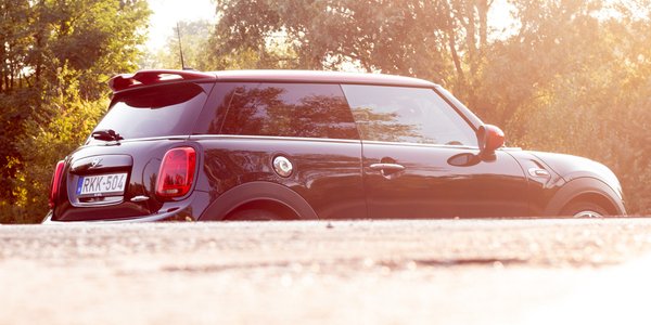 Rövid hossz, rövid túlnyúlások, alacsony tetővonal, alacsony has. A méretei konkrétan: 387x172x141 centi. Azaz a Cooper JCW külső határai kábé ott vannak, ahol egy Swiftnek. Pusztán a méretéből és az arányaiból így nem következhet, hogy a gokart az első, ami mindenkinek eszébe jut a kormánya mögött. Csakhogy ott van egyrészt az a gránitkeményre hangolt futómű, ami nagyjából minden Miniben ott van. Az újakban mindenképp, az éveiket nálunk begyűjtő darabokban pedig a mindenfele lógás alatt nyomokban. Itt sem vették lágyra, sőt! Elöl MacPherson van, hátul multilink, de ami a lényeg, hogy minden olyan merev, aminek köze van a közvetlenség-érzethez, hogy az oldaltámaszba préselt bordáidban érzed, ha átmész egy cigicsikken. És ez általában rohadtjó!
