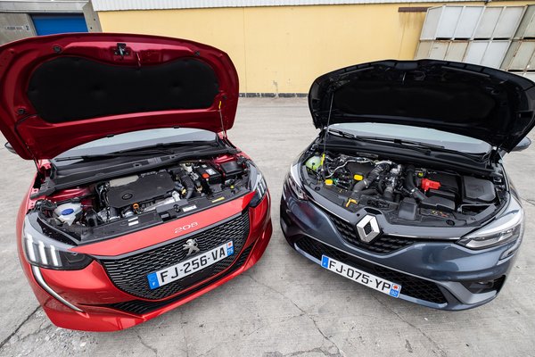 Mindkét autót dízelmotorral vittük el; a Peugeot-ban az egyhatos, 100 lóerős volt, a Clióban a másfél literes 115 lovas, egyformán Euro 6.d-kompatibilisek, máshogy már nem is lehetne árusítani őket. A váltók egyformán bal-előre rükis, hatgangos, kézi kapcsolású szerkezetek, a hátsó üléseiken pedig kísértetiesen hasonlóan nincs elég hely – e tekintetben talán még a Clio a jobb a kettő közül, mert hangyányit kevésbé skót benne a fejtér, és a térdeknek a centiméter.