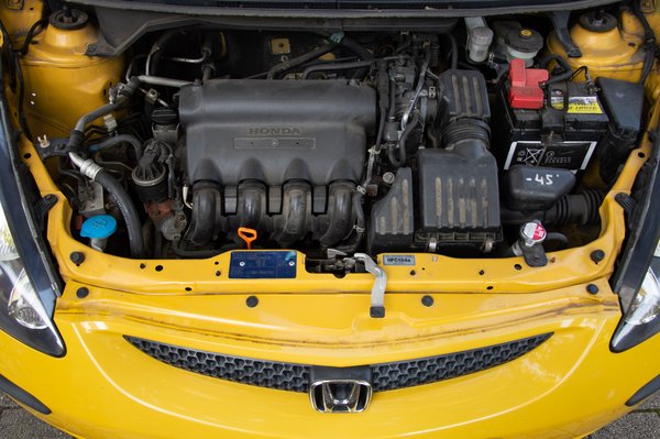 A Jazz első generációja mindössze kétféle motorral készült. A kisebbiket, az 1,2-est a maga 78 lóerejével én főként városi használatra venném. A tesztautóban névleg 1,4-es a négyhengeres, valójában azonban 1339 köbcenti, ami a kerekítés szabályai szerint ugye inkább 1,3-as. Ez 83 lovas, ami számszerűleg azért nem olyan sokkal több. A japánok ikergyertyás megoldást alkalmaztak (vö. Alfa Twin Spark), ami a gyári ígéretek szerint nyomatékosabbá és takarékosabbá tette.