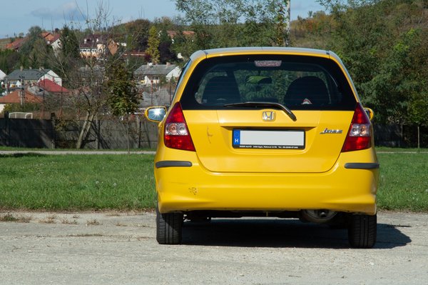 Imádom azokat az autókat, amelyeknek van színe. Annyira sok az utakon a fehér, fekete és szürke autó – a sajátunk is fekete –, hogy egy-egy bevállalósabb szín megmelengeti a lelkemet. A kanárisárga gyöngyház kifejezetten jól áll a Jazz törpebuszformájához, főleg hogy lényegében gyári a teljes fényezés. Szépséghibát a hátsó lökhárító sarkán találunk, kanyarodás közben egy harcias követőnek sikerült utolérnie. A csomagtérajtón pedig egy matrica levakarhatatlan maradványaira bukkanunk. Ezen kívül semmi, rozsda sehol, az élek, hézagok szépen futnak.