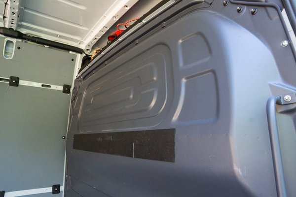 Mikor közeledtem a kocsihoz, eltűnődtem, látva a hátsó ablakot, van-e az elválasztó lemezfalon is ablak. Aki arra tippelt, hogy nincs, eltalálta. Elképzelésem sincs, hogy ez miért jó, talán, hogy ne féljenek a sötétben a raklapok. Főleg úgy, hogy az extralistán 44 ezer a hátsó ablak, míg a raktérbe néző 20 rugó. Én speciel pont fordítva rendeltem volna, így mi tudnánk ellenőrizni a rakteret, a rossz szándékkal kukucskálók pedig nem.