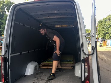 Voltam már nagyobb rakterű autóval (Iveco), de azért itt se kellett panaszkodni, simán fel lehet ebben is állni (200 cm belmagasság). Ebben a modellben 440 cm a raktér hossza, így ezzel se volt gond, egy komolyabb méretű fából épített kocsma elemeit is szépen elnyelte és például 220-as sörpad garnitúrából is egész sok elfér. A konkrét modell saját tömege 2534 kg, össztömege 3490 kg, így közel egy tonnát rakhatunk be és megfelelő feltételekkel még két tonnát vontathatunk, lévén az össz-gördülőtömege 5490 kg.