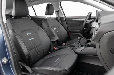 Ha iszonyatosan bal lábbal keltem volna sem tudnék belekötni az utasterébe. Itt aztán már végképp nincsenek váratlan dolgok, mert az embernek az az érzése, hogy minden kategóriatársban ezt találja. Álló tablet középen, alatta klímapanel. Éppenséggel LCD-műszeregységre már nem futotta, csak hagyományos, mutatós műszerekre, amelyek karéjban veszik körül a belső infó display-t. Az anyagok jók, tapintásra is, a félbőr, relatíve fullos belső tényleg megfelel annak, amit az ember elvárhat egy nem prémium autótól. Na jó, a bőr kissé vegán hatású, de ez legyen a legnagyobb baj.
